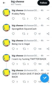 Just kidding. He proceeded to make a bunch of insanely cringey accounts like “punished incel” @ raper6000, where he would praise himself in third person.